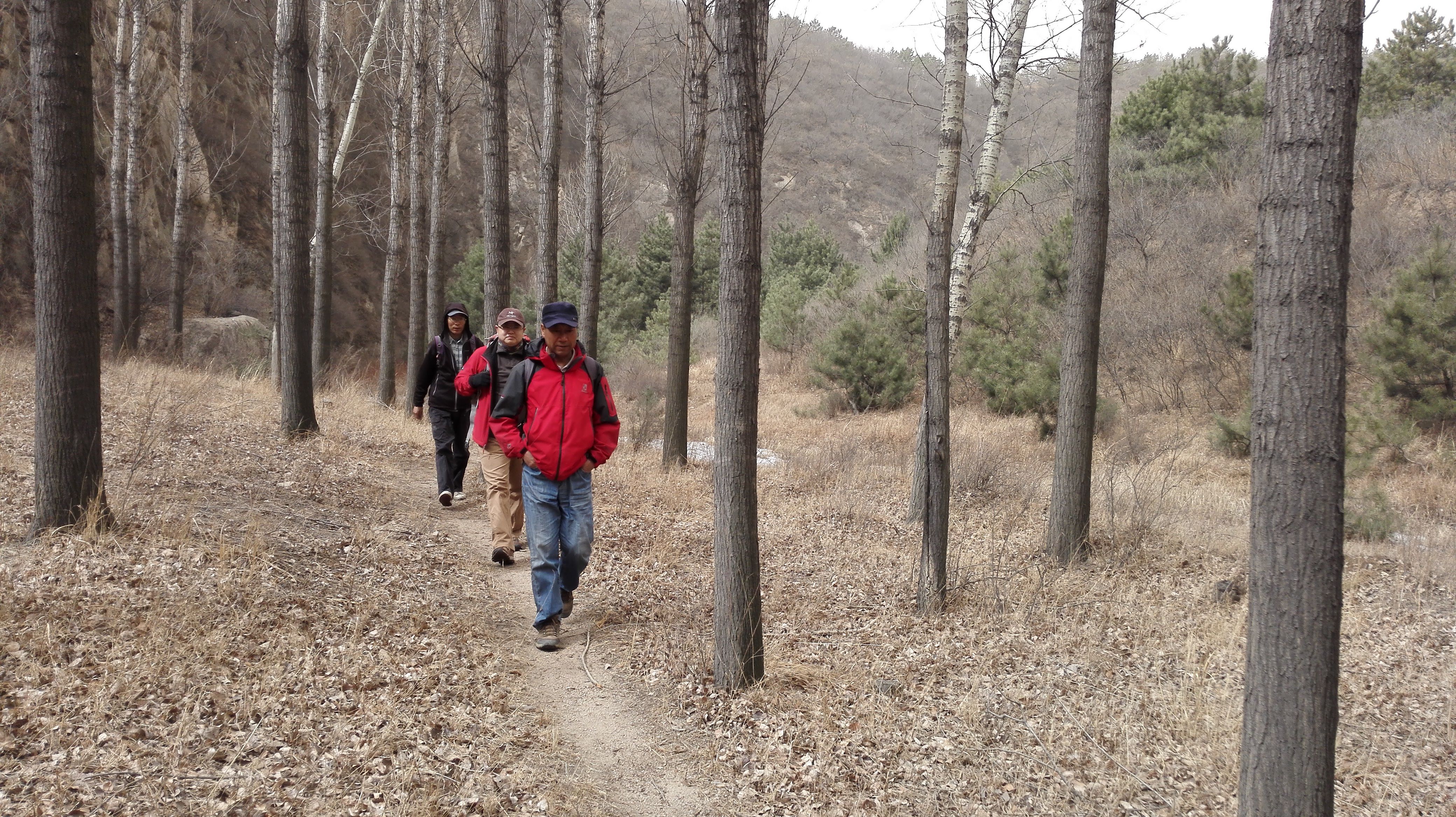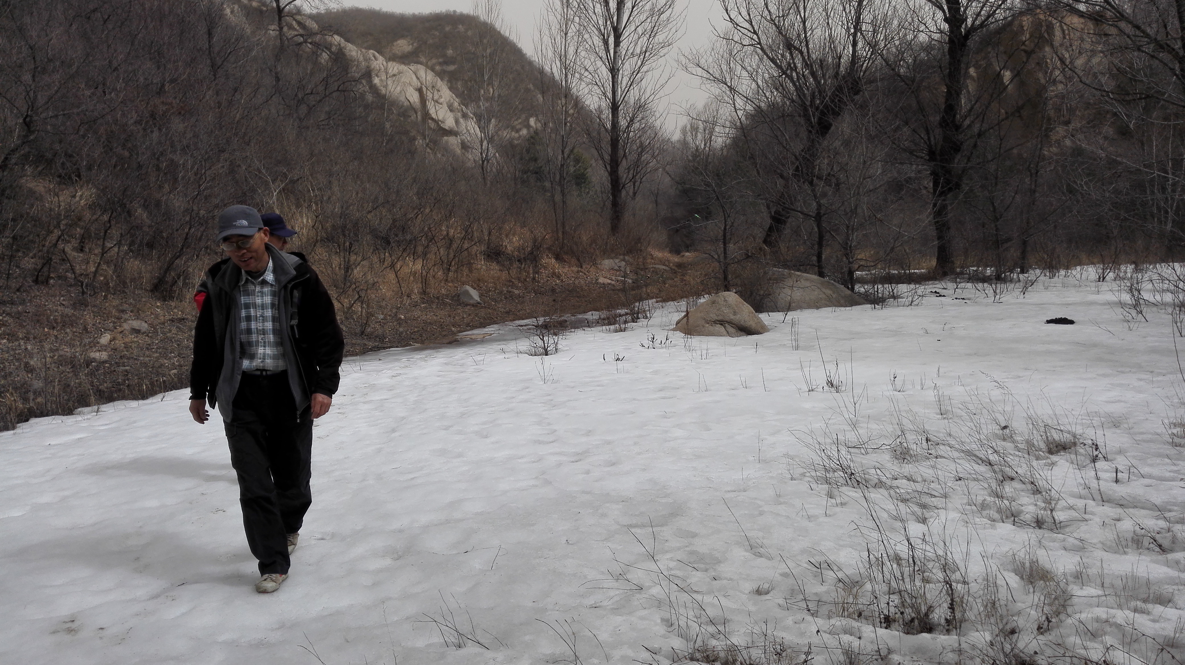 路线起点是二道河路口,沿110国道辅路南下,至莲花滩,右转,与莲花滩-孟家窑-箭杆岭台地擦一个边,然后左转,进沟,顺流而下,至两沟交汇处(这里是很好的野餐地,草甸、溪流、大石头。。。不过时节未到),右转,沿麻地沟上升,至垭口,下降到沟里,穿过长城脚下的公社,至水关,右转,沿八道岭高速辅路走到八达岭,解散。