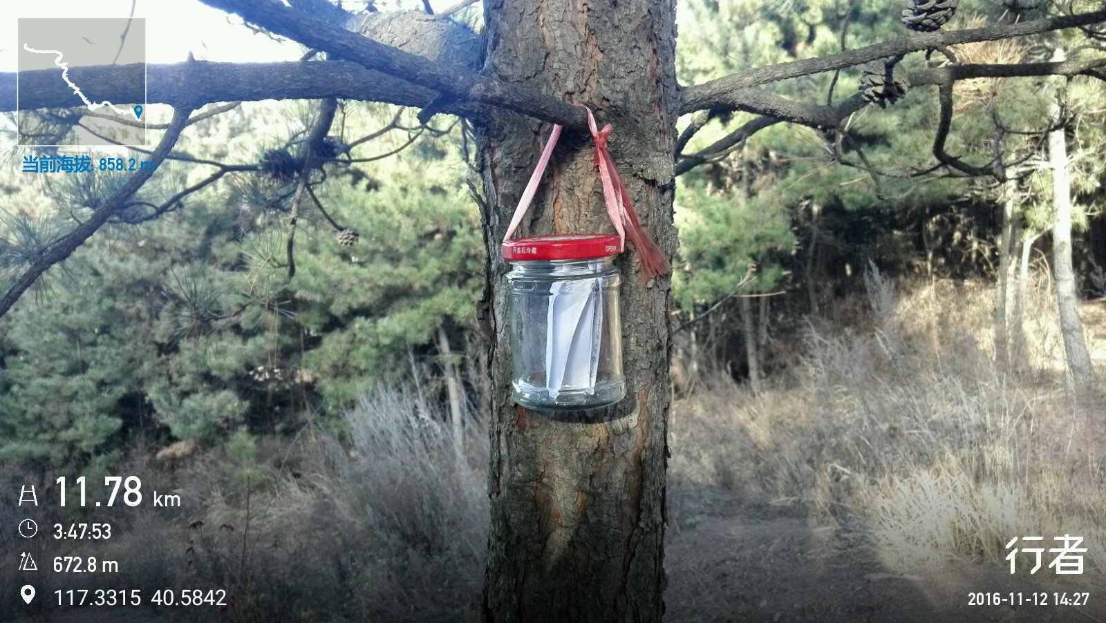 这是我非常喜欢和推荐的路线,三周前走过一次,我不厌其烦地再走一次,是为了把它打磨得更加完美。与上次相比,有一个微调,下车的地点推迟到道边,这样可以减少一部分水泥路徒步的比重,节省时间。另外,东梁到南梁那段不长的模糊路段,可以再明晰一下。这次还会控制一下速度,争取在山上多呆些时间,避免过早抵达终点,百无聊赖地等车。这次我还想玩一个小游戏,我会带一个小玻璃瓶,里面塞一张纸条,写上名单和日期,拴到沿途某处,在轨迹上做标记,并拍照。下次自己再走,或者别人再走,可以尝试找到瓶子,拿回旧纸条,换成新的纸条,如此一直传递下去。