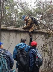 10:30,桃花二库,在它左岸向上开始爬山,5年前一个暴雨天,我们直接破柴上去了,这次,我们打算在岔路口向左而行,不知 是否有路。