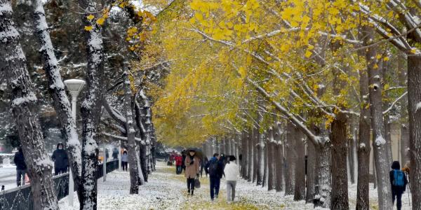 周日预报降温降雪,空气应该不会差。所以在城里溜达,看看秋景。
