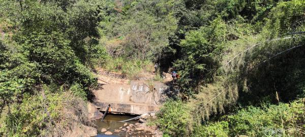 这条小路随溪而行,弯曲平缓,绿水青山相依,泉水叮咚相伴。小路走1公里有一座杨溪湖饮水坝。后来听当地人说杨溪湖饮水坝对面那条山冲以前有一条石板官道通到蕉溪,传说一块巨石上留关云长留下的四个马蹄印,这条官道只能留着下次再去走走了。