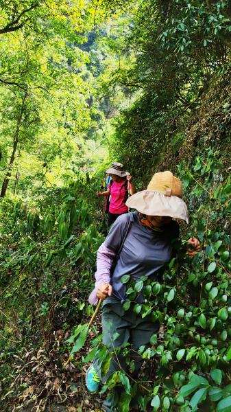 12:20,我们向南家槽出发,是一段羊肠小路,平时走的人很少很少。好在南家槽到丙子岭的供电四线是沿这小路架设的,四十多分钟就到达南家槽。这里是狮子山半山的一个小村落,三十多户客家人聚居。一条泥土村道到狮子山庙。下午2点多,回到小水岭停车处。回来后了解到南家槽有一处大王冲瀑布,七级叠瀑,落差280米,我们首先不知悉而错过了。【***此行重点去找这个七级叠瀑】