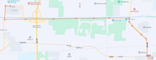 从射击场出发,一直沿着永定河引水渠走,然后再旱河路上拐弯找3个宝,最后再田村地铁站结束: