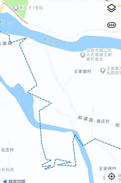 连续两周的拒马河岸徒步都会跨过京冀边境,第二次拒马河徒步还沿着边境线走了一段,在两侧都是铁丝网的那段寂静水泥路上,恍然产生了身在国境线的错觉。在三年疫情中,京冀边界的平原地带拉起了一道漫长的边境墙,严防死守,虽然疫情过去,作为遗迹的铁丝网依然没有拆除,见证着那段历史。我想利用出走的机会,把这些文物记录下来。电子地图上的边境线数据十分粗糙,放大到一定比例,就变得直来直去,与卫星地图上的实际地物并不吻合,我也想通过实证来校正这些数据。在电子地图上查看边境线,发现一些村庄近在咫尺,如河北蘧(qú)家磨/北京冯家磨、河北小兰家营/北京小兰营子,很期待去了解这些边界线两侧的村庄有着怎样不同的风貌。所以这是一次带着考察目的的出走课题,有些接近学术意义上的课题。