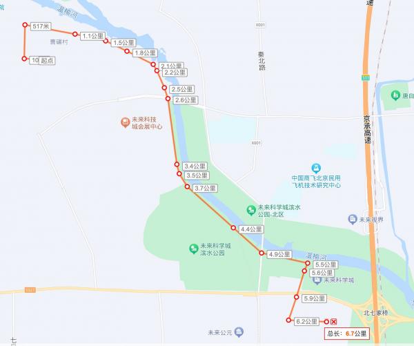 这次课题又是走温榆河边,为未来科学城北边的一段。路线如下: