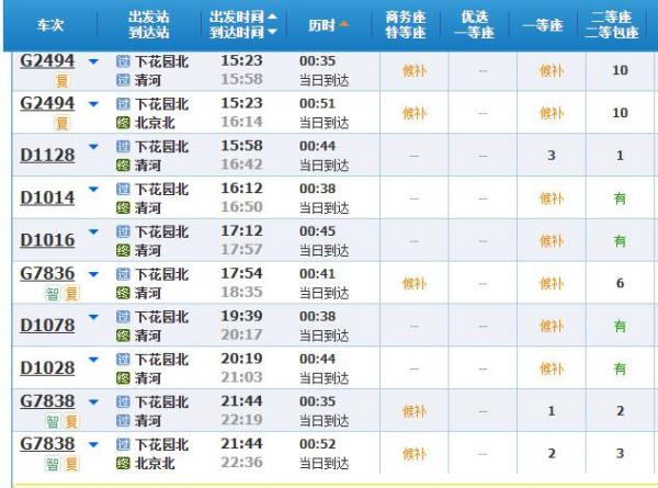 2. 着急赶回的可考虑高铁,一小时内可到清河/北京北,可以避免公路上的拥堵,只是费用较高(50+软妹币)。下图是开题时(10月9日21.45)查到的的出走日车票情况。