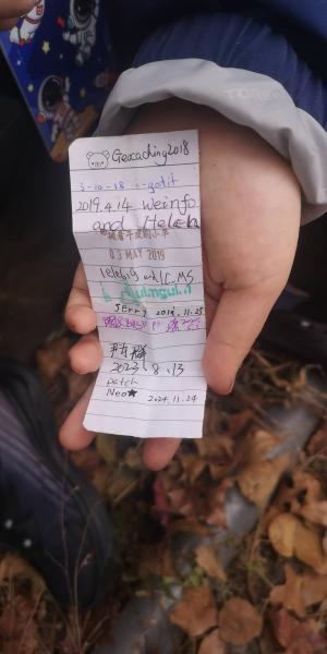 上次只找到一个cach,这次研究了一下园中每个宝的上次找到情况,确定了这条找到宝可能性最高的路线,从上次找到的1号宝开始,有可能找到五个。