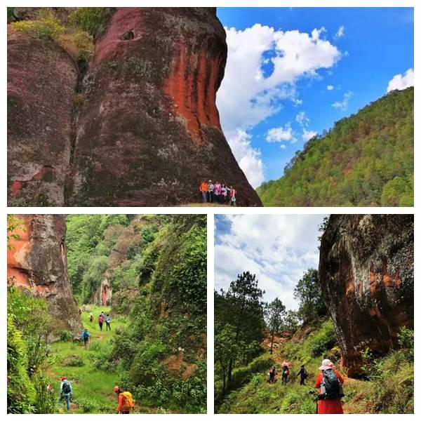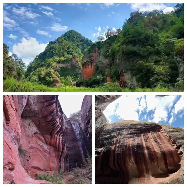 天气晴朗,阳光明媚,丹霞地貌,强度适中。