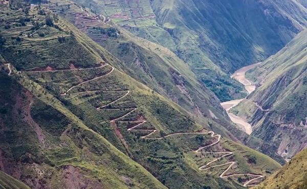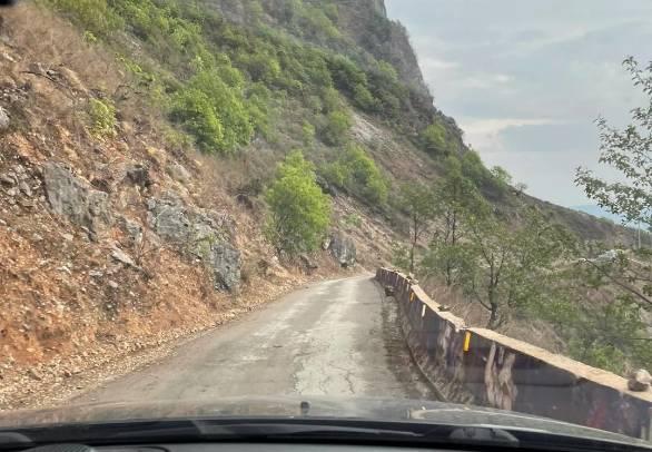 从东川舍块前往徒步起点要穿越10公里的挂壁公路,也就是当地人说三十三道拐,惊险刺激,血压飙升。