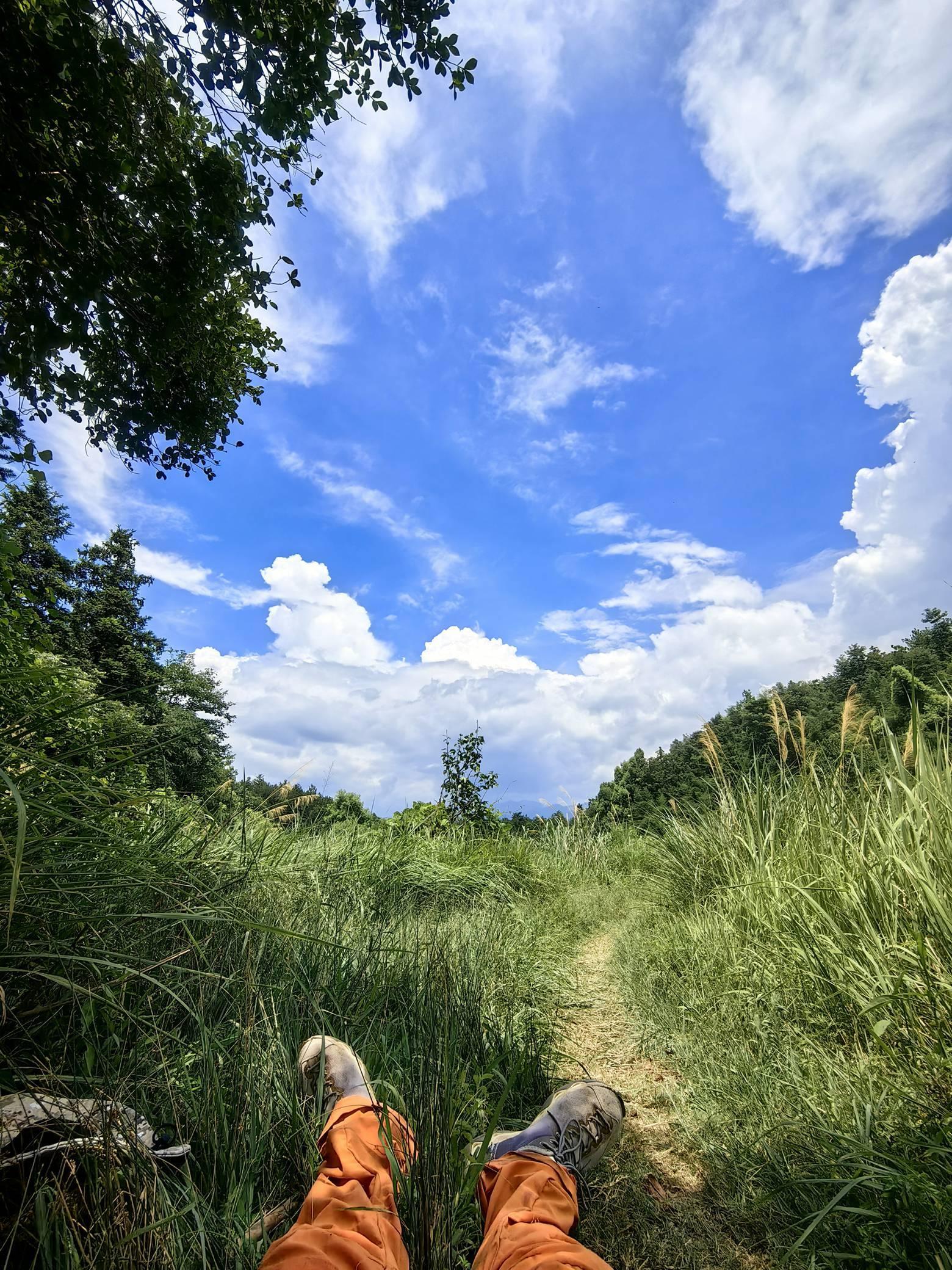 然后,沿着云峰台东麓一条新修的公路向上,到达垭口之后,有兴趣的人,可以登顶,然后再返回。