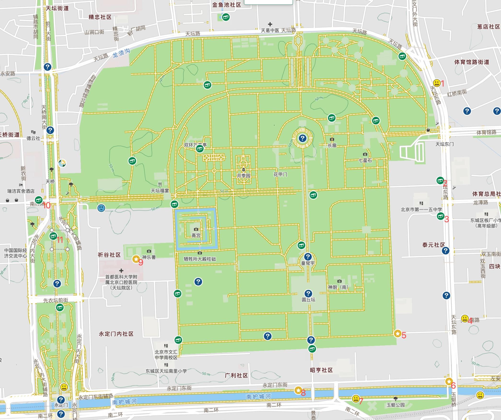 天坛一带是北京geocaching最密集的区域之一,我们在天坛外围绕上半圈,就可以搜寻10来个宝。