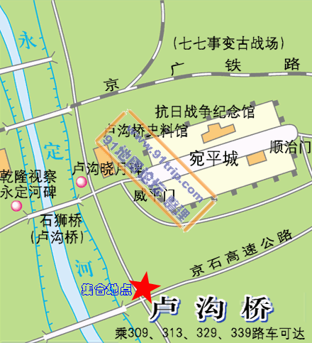 8:00 卢沟桥集合,集合地点见附图。
