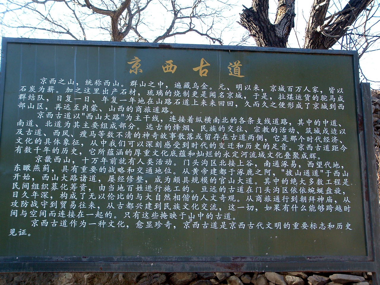 都给地表景观带来富有颜色和层次变化的锦绣色彩。 该地区现存一条明、清时代的商业古道,是北京地区通往山西交通要