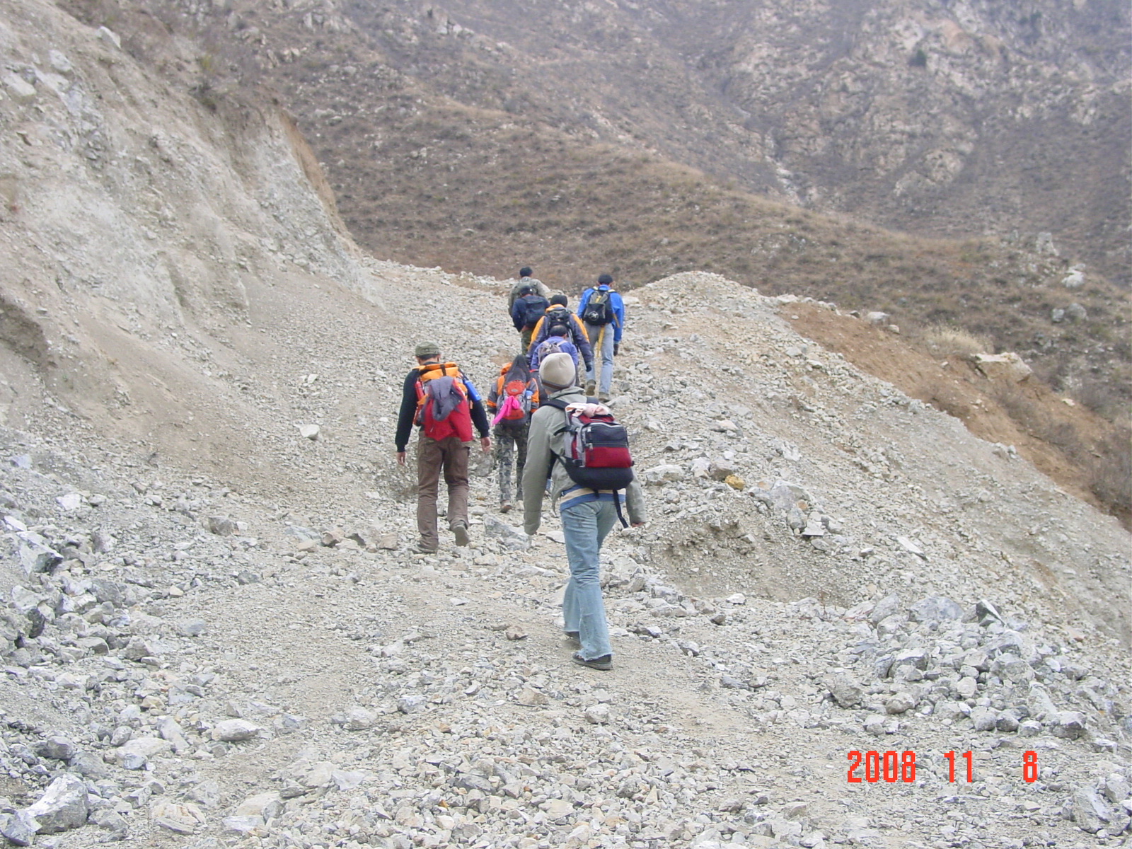 E点-赵各庄:此段为沿坡下降及河谷水平移动,行程约3KM。
