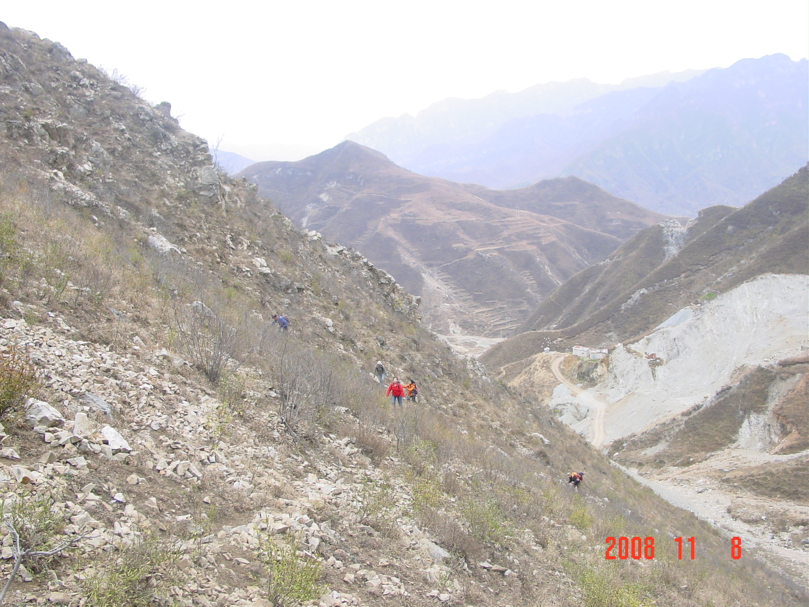 野狐-A点:这一段为山谷连续上升,行程约4KM,上升400米,A点为此路线的最高点,其东南侧为矿区,野狐至A点为运送矿石的机耕道。