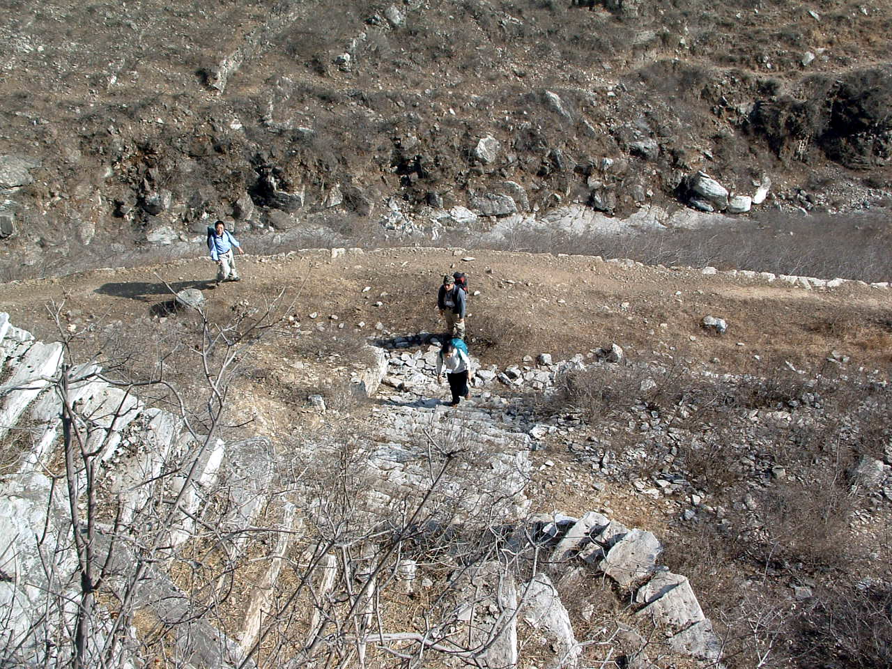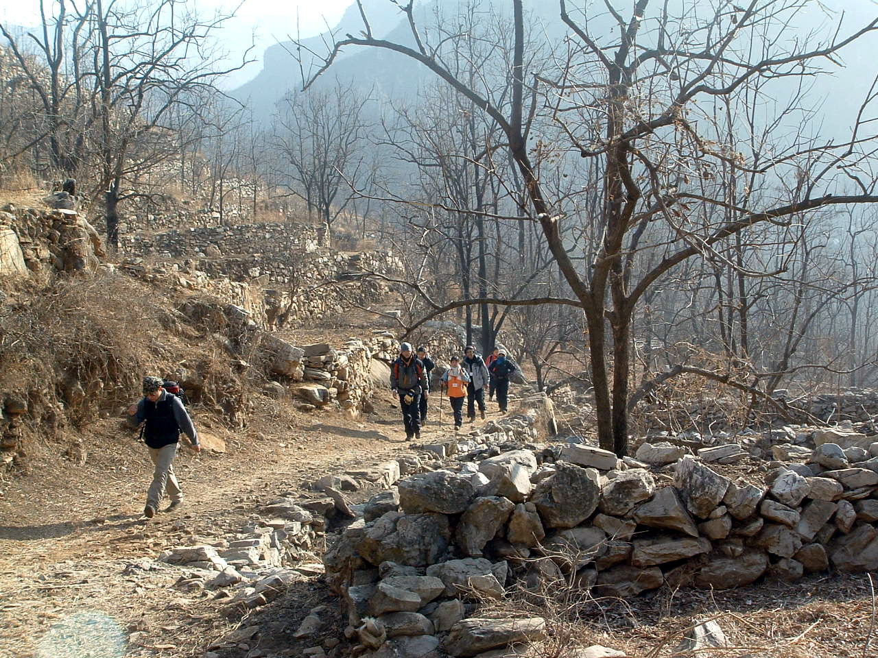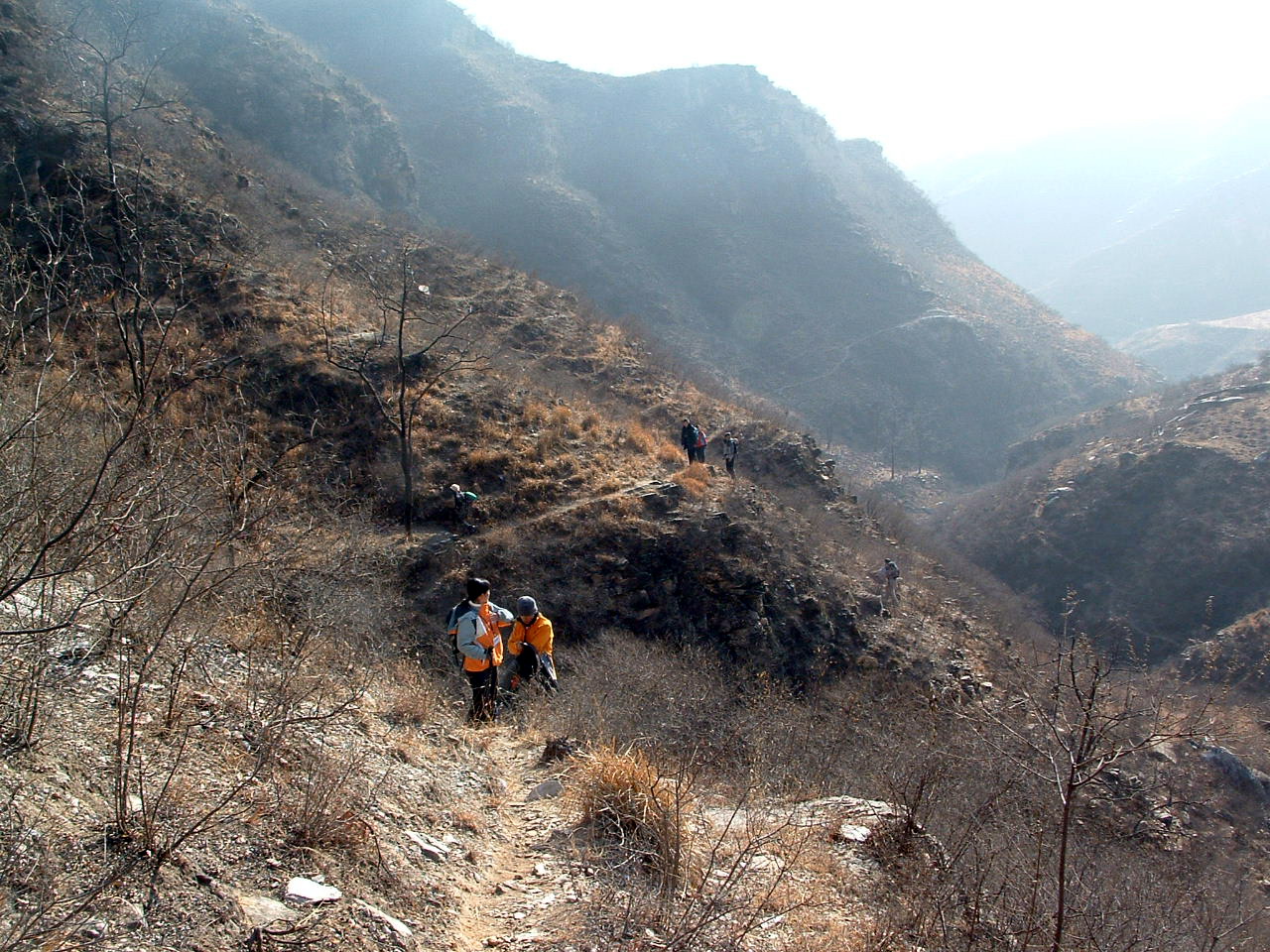 2、以山谷中徒步行走为主,由一渡进入公路北侧的山谷,向东北方向行进,再沿南北向山谷南行,翻过南侧山梁,出山谷,进入平原地带。