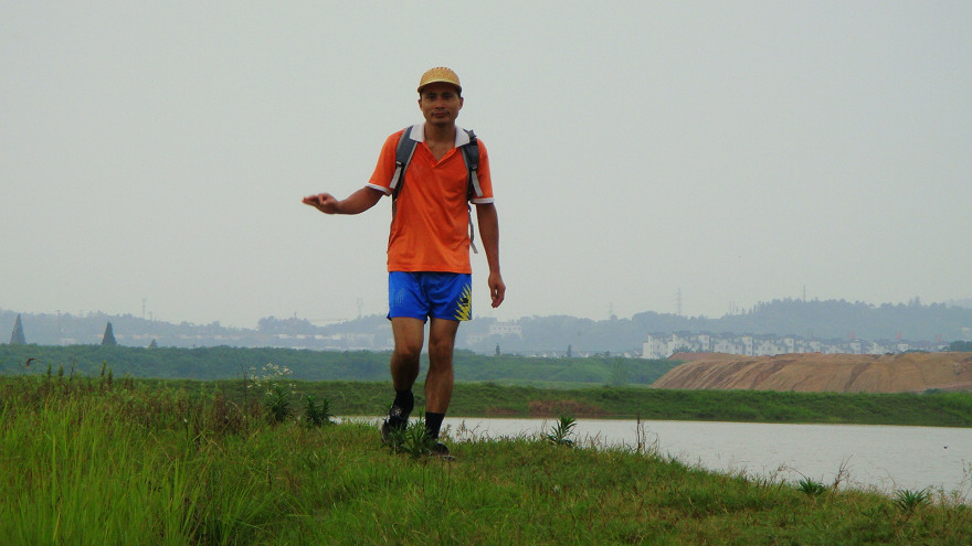 12:30,沿靳江河堤向下游徒步。如果江水水质可以,就下水游泳、或泡澡。