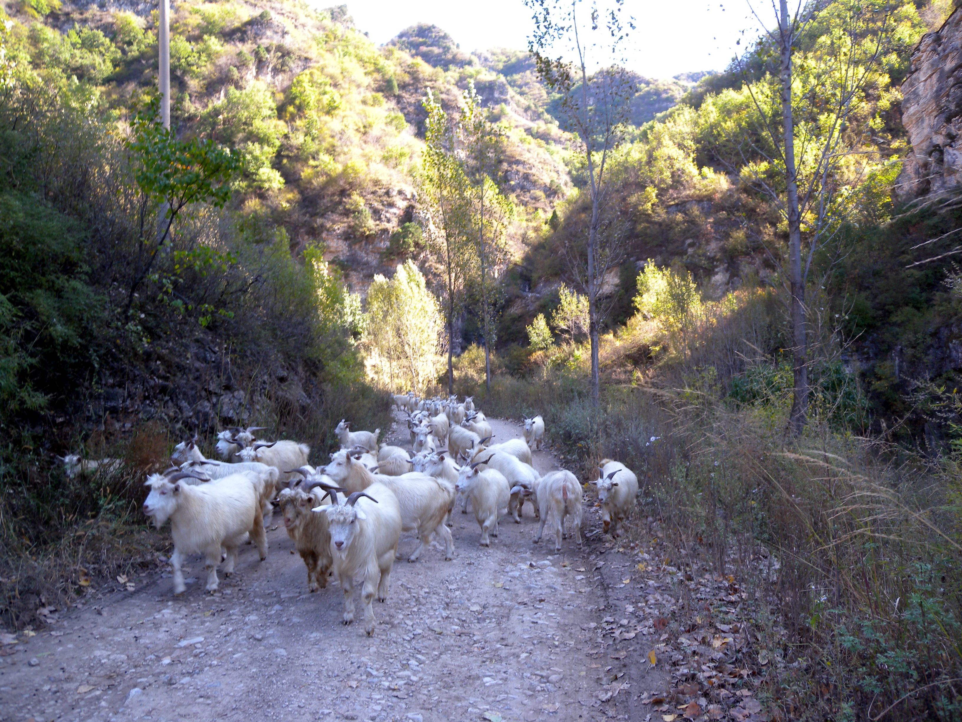 我们将在三天时间翻越4条山脊,跨过三条东西向河谷。其中第一天的任务最为轻松,将上升300米翻过一道山脊,沿山谷中的水泥路走到六道河,行程仅12KM。第二天的任务最为艰巨,将翻过两道山脊,行程26KM,由六道河到刘寨子,路况绝大多数为驮道,两次翻山的上升幅度倒是不算大,只有500米。第三天的强度居中,翻过一道山脊,上升300米,行程18KM,到新城子,前半程为驮道,后半程为水泥路。