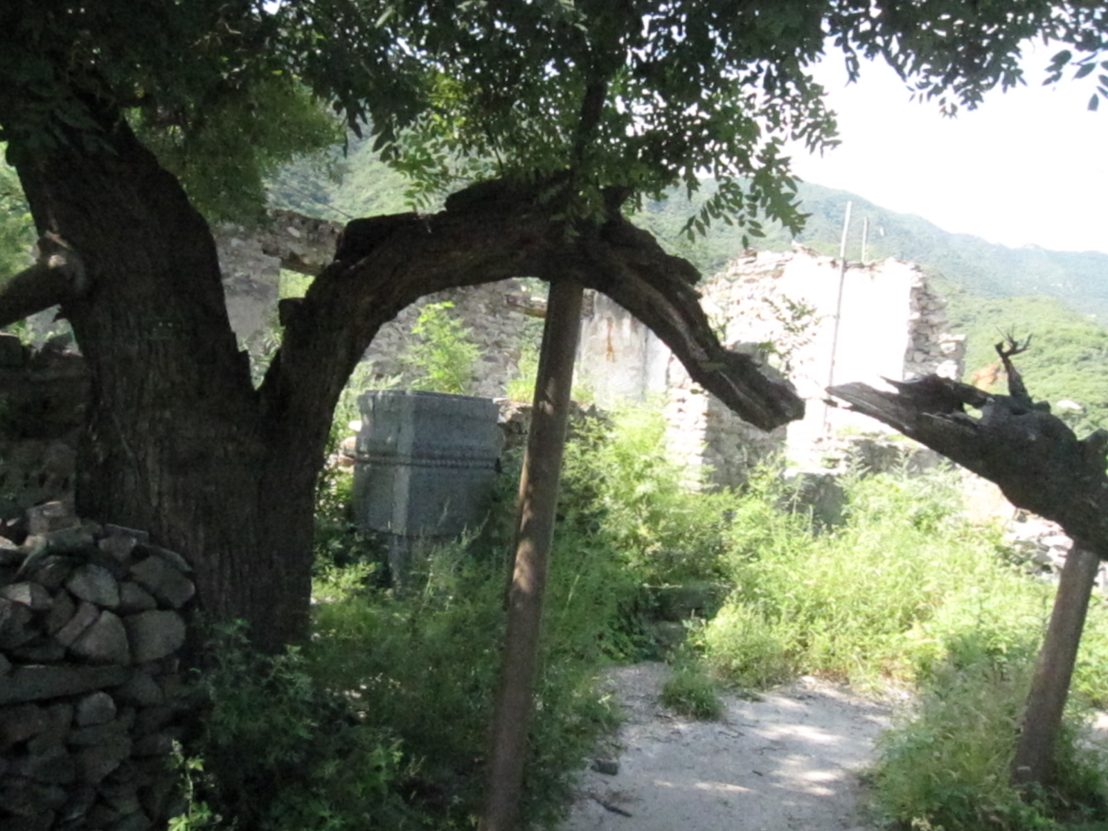 圈门到峰口庵是京西古道的一部分,沿途还留存了些古迹,有古桥、小庙、戏台,更多的是古槐。残存的古道基本还连贯,有些已改造成车马大道。峰口庵最后200米的爬升还保留了原有的古道,号称十八盘。