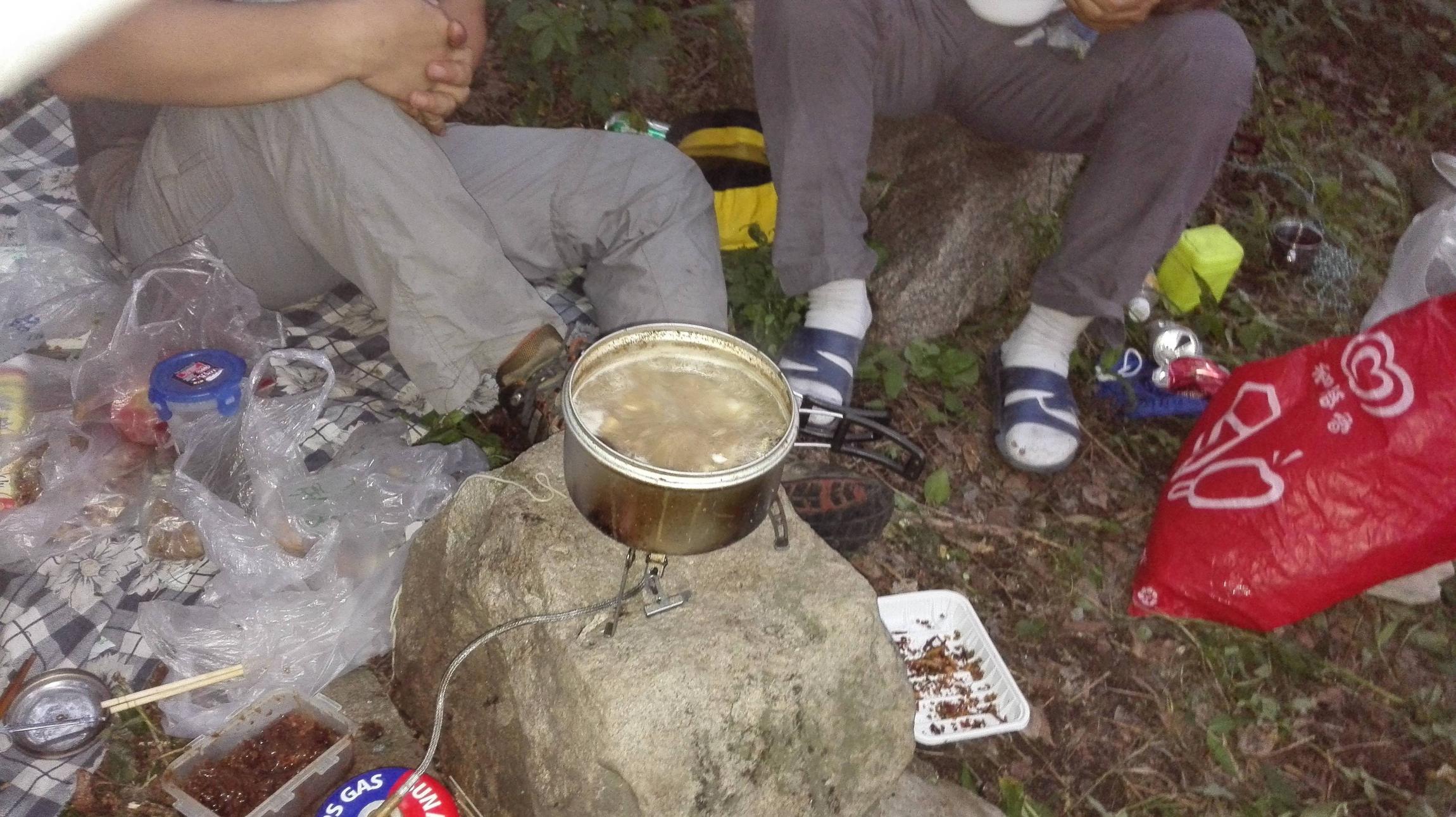 那口井的发现,标志着它西侧的这片宽敞的林地就是我们的营地。不过,这口井水面深约1.7米,不是我最初计划里提到的那口伸手就可以舀水的浅井,那口井在营地东侧300米之外,是2小时之后才由大明子和好友发现的。此时我已经绑好了吊床,用花铲挖好了地灶,正奋力煽风,试图让火燃烧得更猛烈。灶上放着的小锅里,是从深井里打来的水。如何用三股绳子拴住小锅,如何操纵小锅在1.7米深的井里打水,这既需要设计,又需要操控的技巧,如果直接就发现了那口浅井,这些麻烦就全免了,当然,乐趣也就全免了。