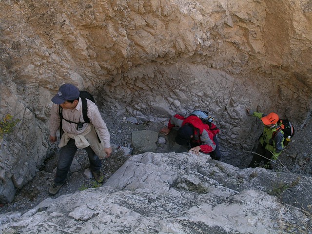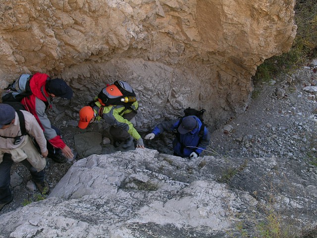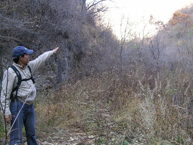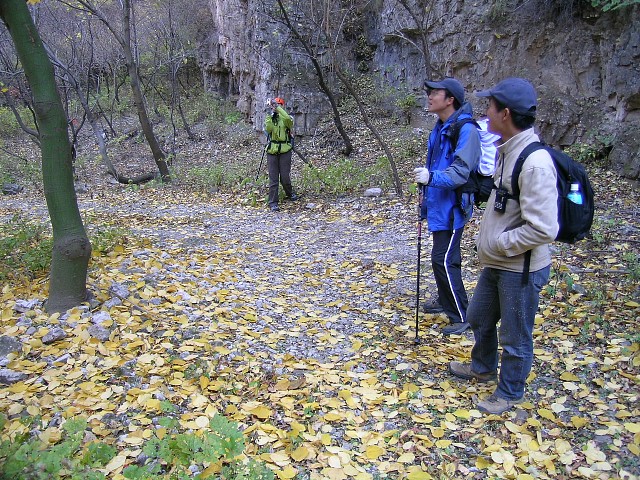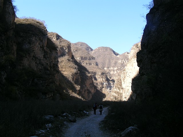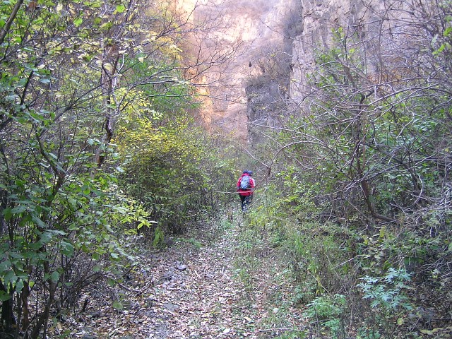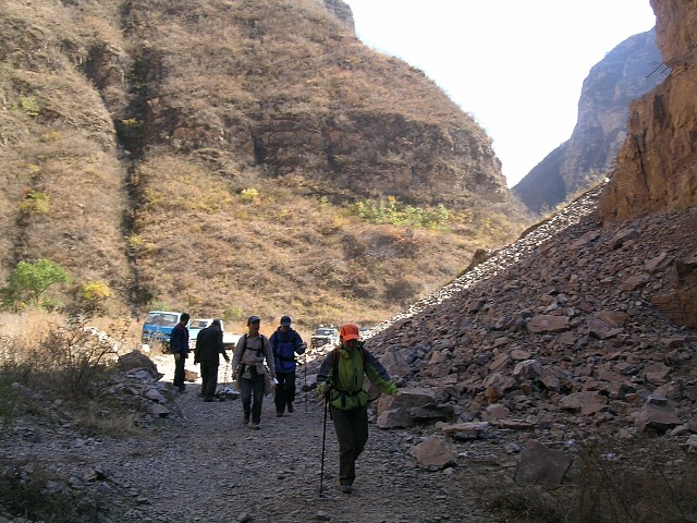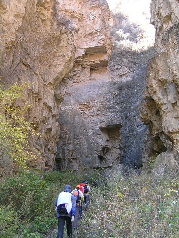 沟宽10-20米,高十几米,中间有两到车辙。竟有如此好的路,大出意料之外。沟壁多成仰角,我们开玩笑的命名它为“五壮士沟”,因为从哪里掉下来都可以成为烈士。
