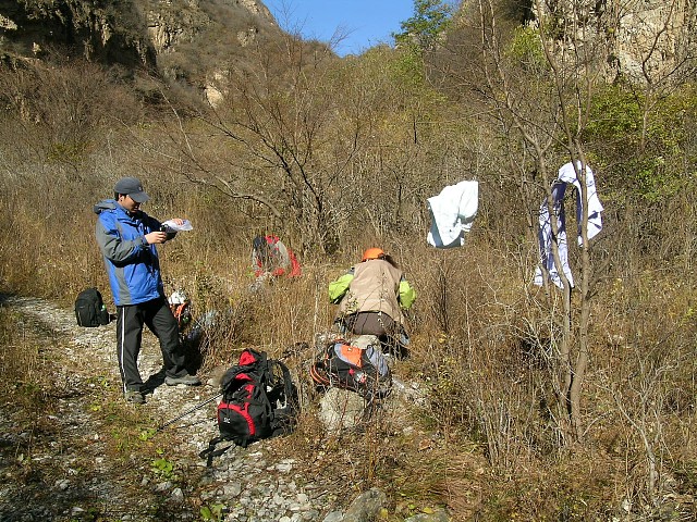 去年听山僧说起有三个人从三个方向同时向笔架山顶峰冲刺均未成功,从此记住了笔架山,虽然根本不知道它在哪。后来找到了“[阿坚原创]北京山峰词典”这本葵花宝典,里边比较详细的描述了作者99年登顶笔架山的经过和大概路线。 这周日是俺成为一头驴子一周年的日子。去年30号我第一次参加这种户外活动,是山僧的大香八拉,从此一发不可收。本来打算在一周年的日子请山僧、小撮等良师益友共登笔架山,无奈小撮公差在身,我又被三天的牙痛折磨的精疲力尽,明天能否好些还是未知,山僧离佛越来越近,所以笔架山登顶计划要被无限期推迟了。 以上是俺出走55公里至镇边城的目的。此计划原本打算一人去实现,后小撮建议我发计划于出走社并亲自披挂上阵且修改了我原来的设想,使此次活动充满了经济性、趣味性、可行性等诸性质。