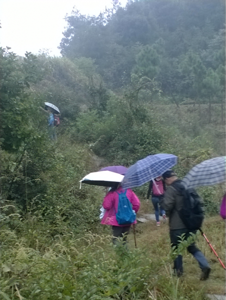 雨还在烦人的下着,过了中午,肚子开始饿了,由于第一次来,还不知道中午的落脚点有多远,路又泥泞,天还不停地下着雨,过了下午1:00,队伍中有人烦燥起来………