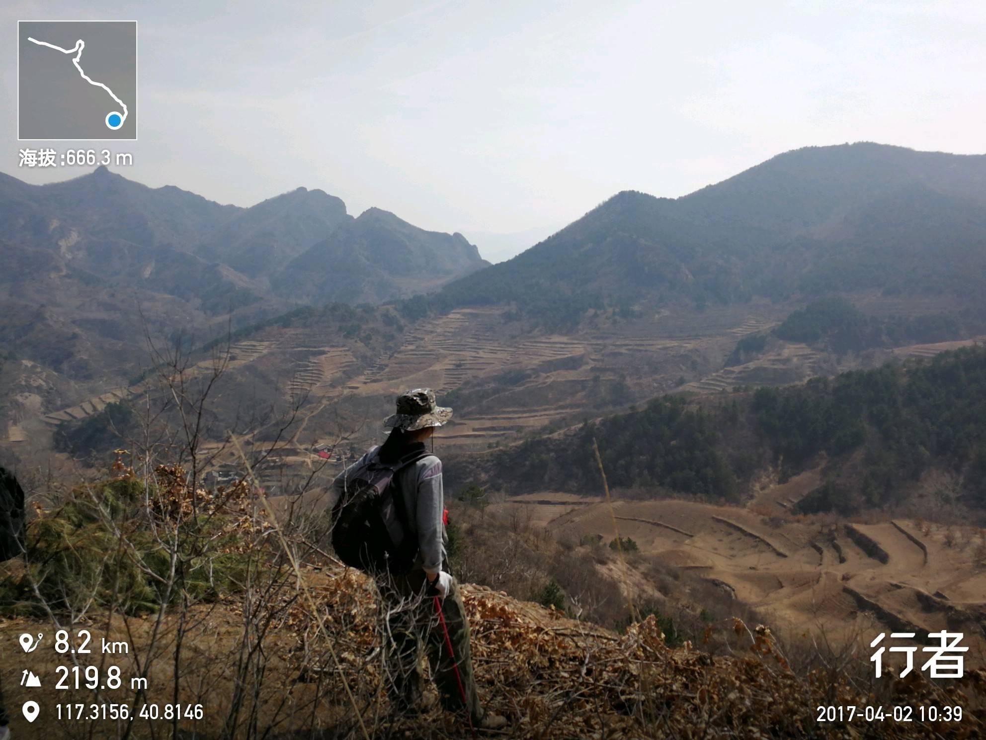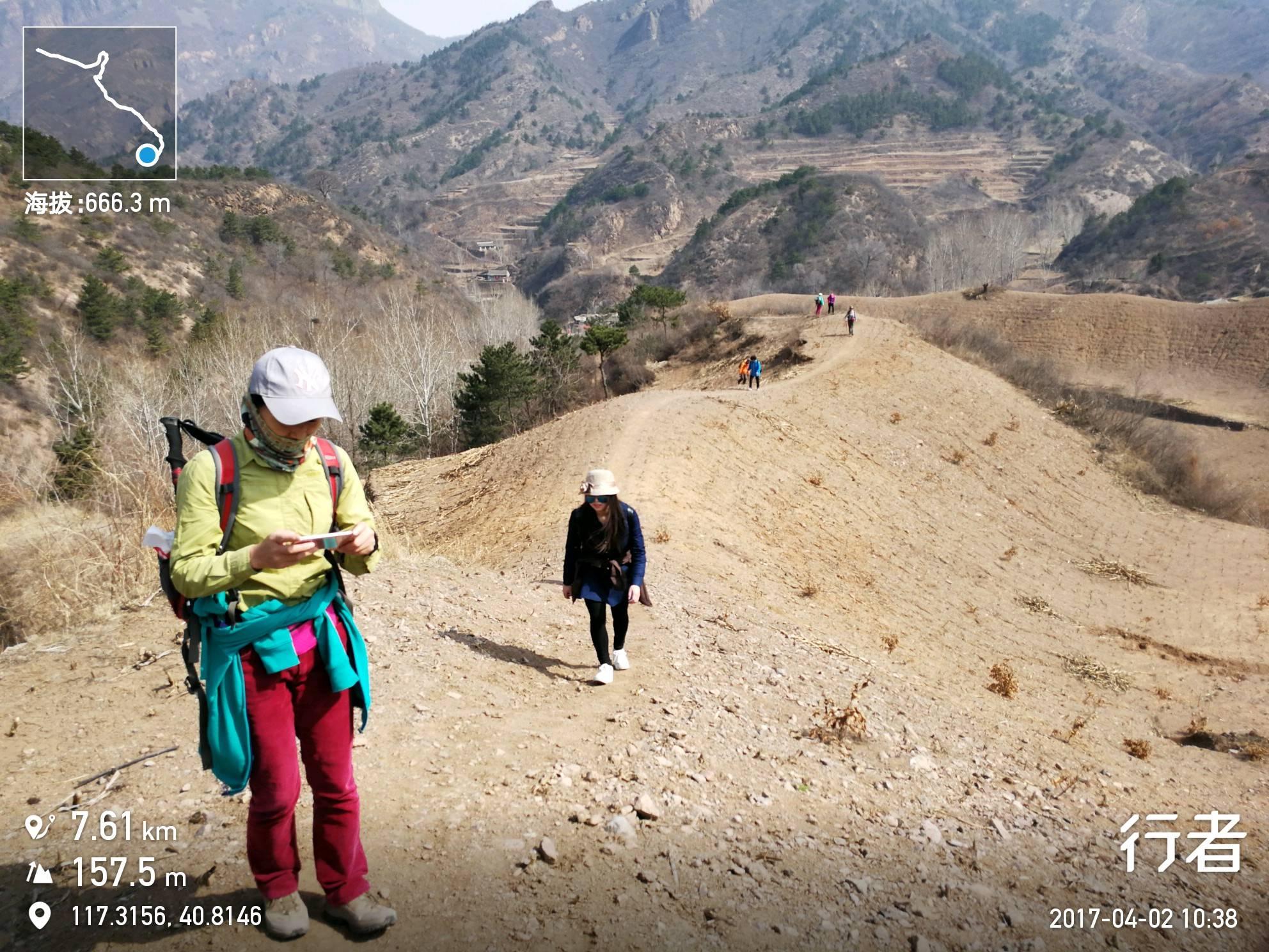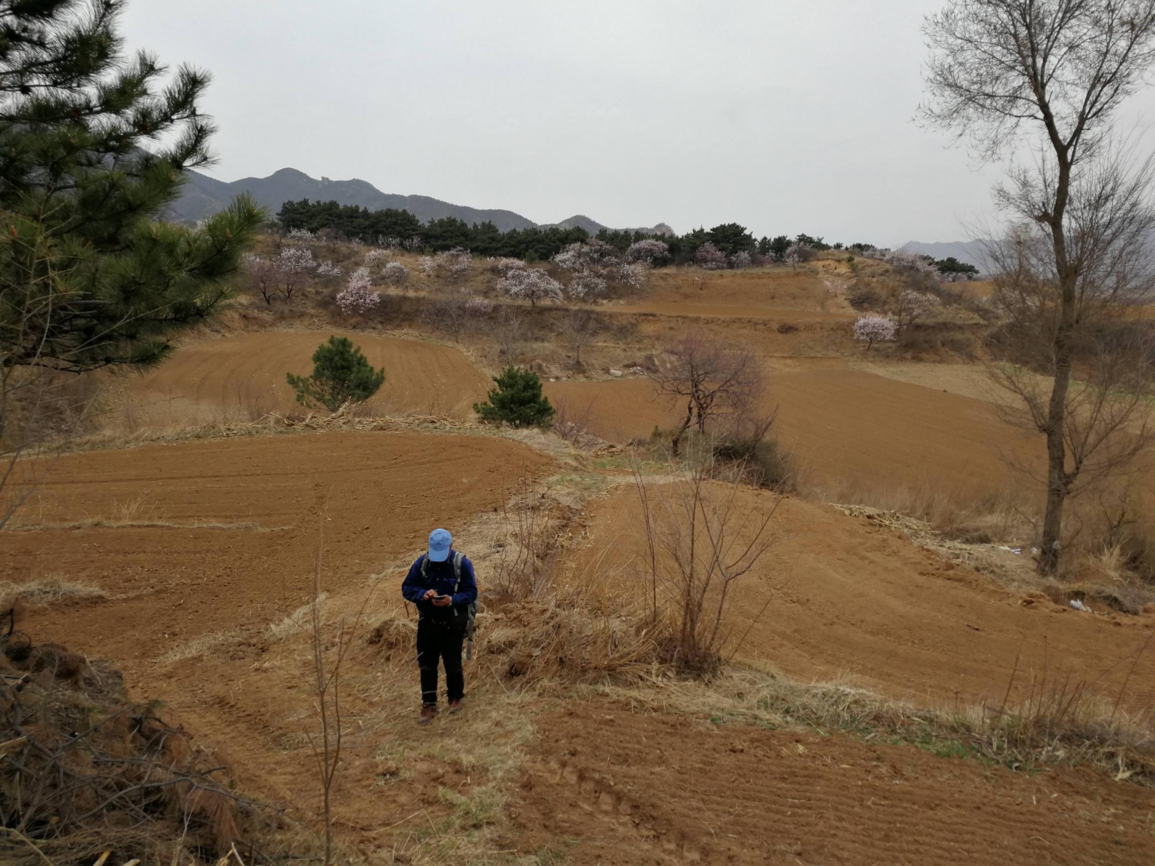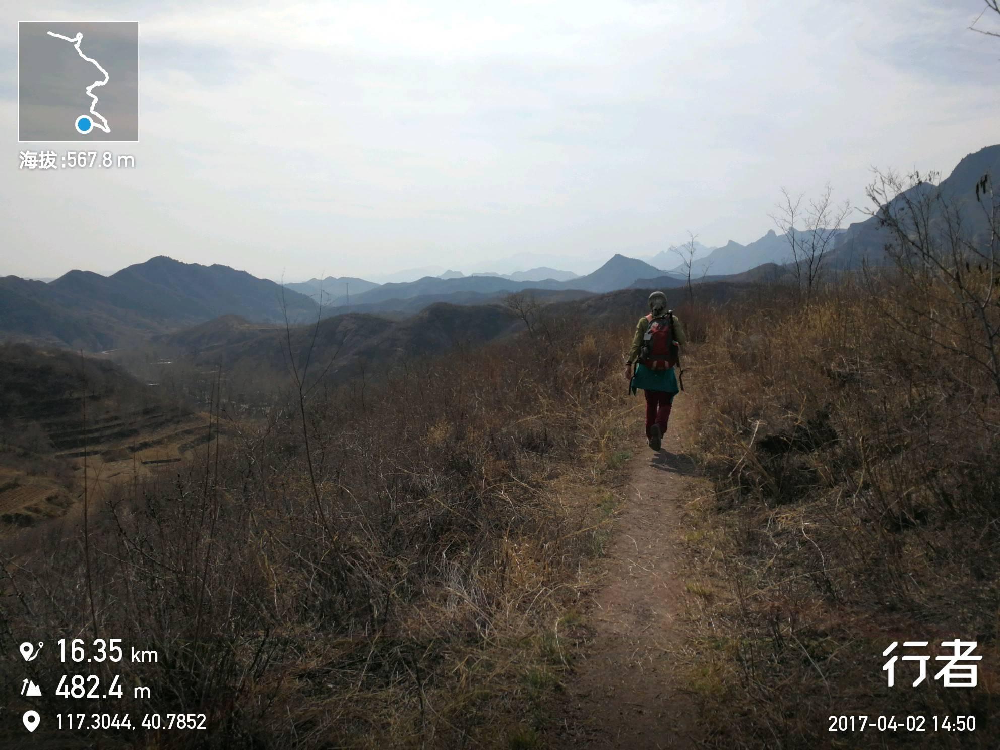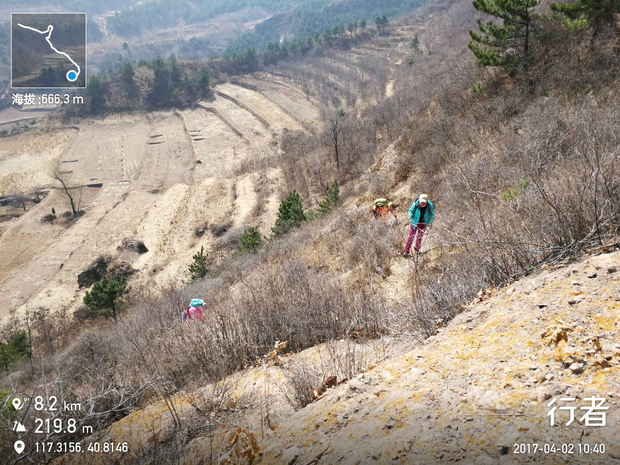 我们没有严格按照我画的轨迹走,那条在和缓坡地上一览无余的路诱惑了我,但它并不通往我们下一个目标——北台子。经一位大爷指点,我们向右爬升,慢慢向正确的路线回归。我很快发现根据谷歌卫星图所画的轨迹并不精确,对地形的判读在这一段有误差。