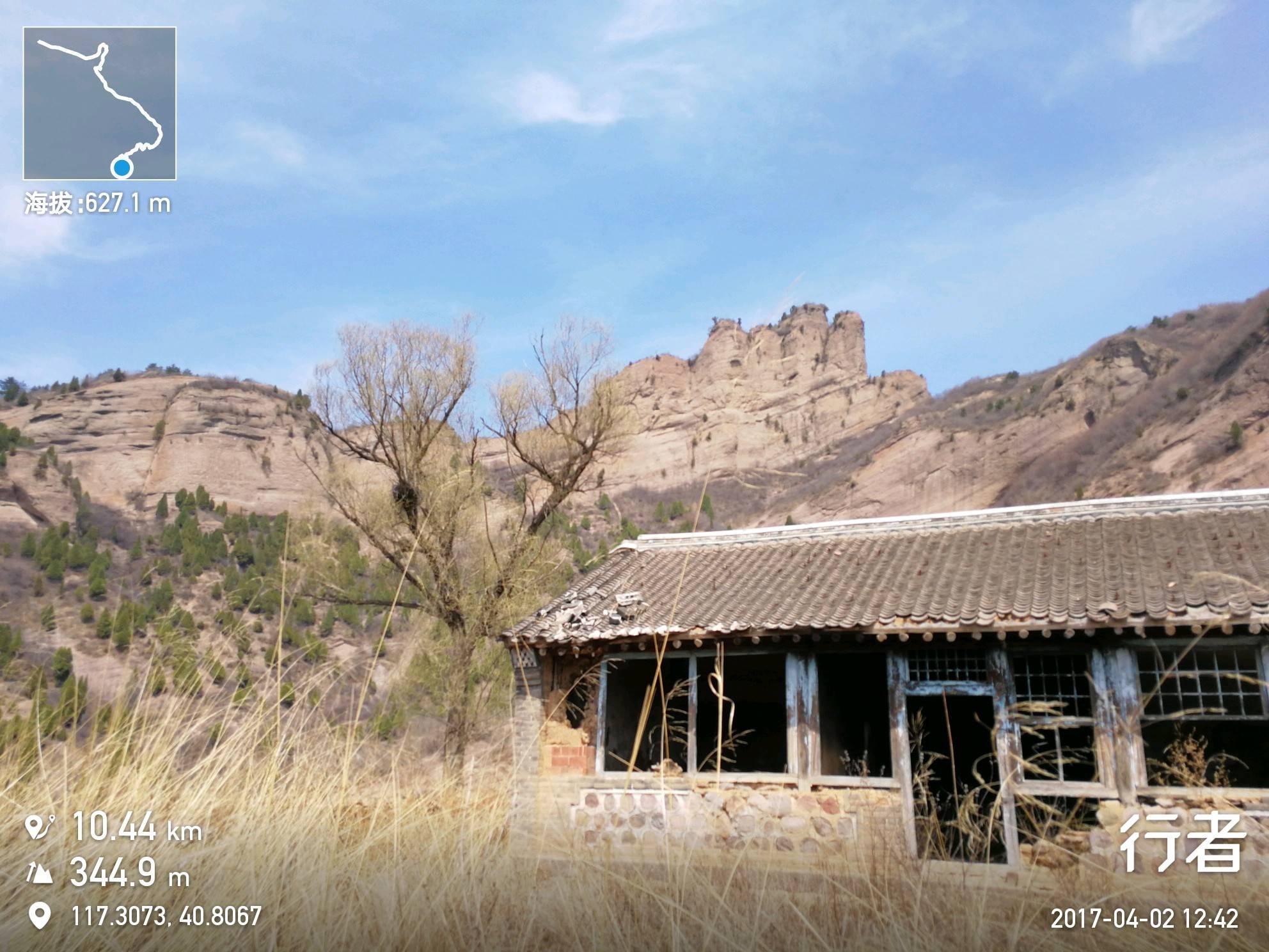 沿途经过的一处房墟。房后的那座山被我们命名为五指山。