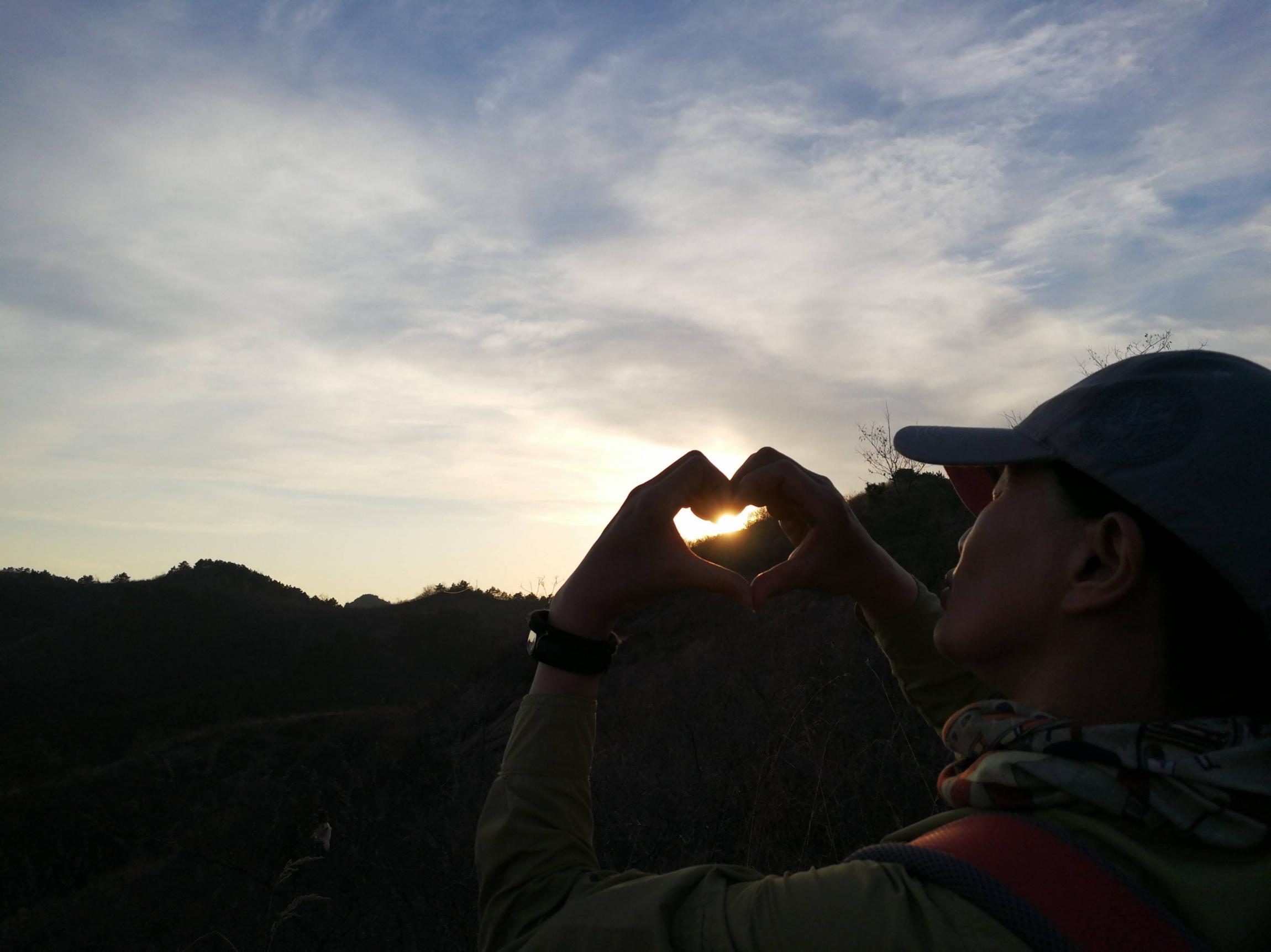 南侧山脊上开始露出一段残破的长城,由此我们开始与长城相伴的行程。长城外侧那条小路已经被过往的徒步者踩成了“羊标高速”,沿途的树枝上贴着不干胶贴纸,地上的石头也涂上了橙色的路标。