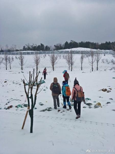 鹅毛纷飞的雪中不见公交车,掌舵人阿混果断决定继续地铁出行。