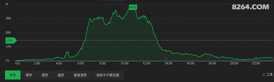 这个超级防火道,上上下下,不停地折腾,最高处的海拔也才450米,但我们累计上升是830米了。