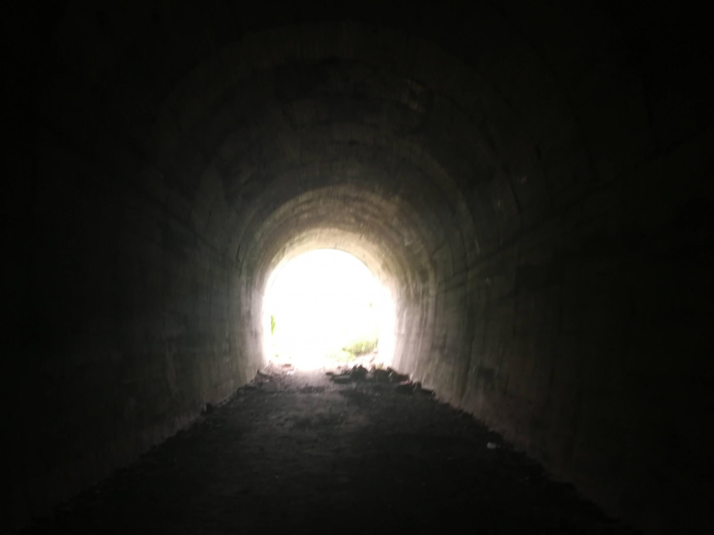 530米的铁路隧道,一头是玉米地,一头是灌木丛,铁路已无踪影,隧道依然畅通。