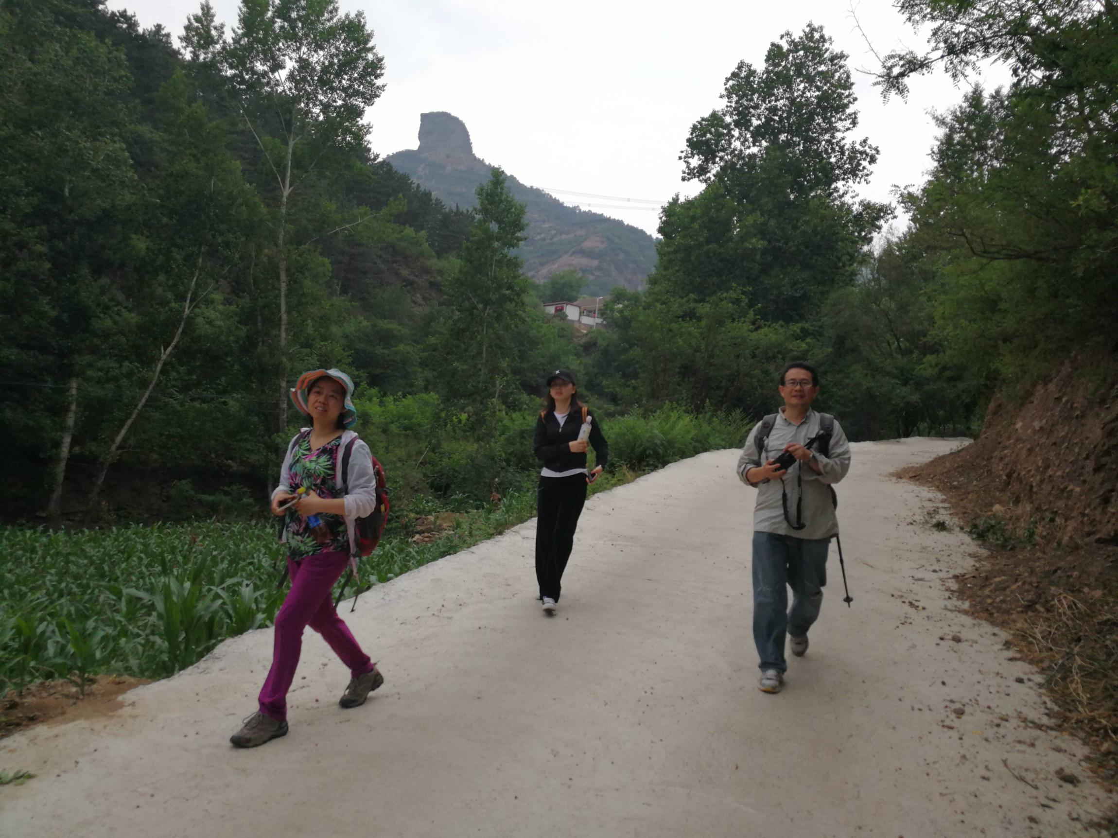三道沟是我们下山后遇到的村庄,郁郁葱葱,给我一种窗明几净的印象,虽然并没有看到窗户和桌子。几位村民,都是老人,站在门口聊天,我们经过时,又被他们主动攀谈了:一位88岁的奶奶搭讪了史努比和大芳,一位73岁的大爷搭讪我和秋池。大爷用幽默的语言向我们隆重介绍了村子后面的三座山峰,可我只记住10点方向那座山峰叫大脑袋,大爷说他们的祖先来自山东青州府大榆树,很感谢他们选择这个山沟落户,这儿冬无严寒夏无酷暑 非常宜居。大爷教导子孙们,以后如果移居外地,别人问起来历,就要说河北滦平大脑袋。1点钟方向那座山上有一个大洞,可容四五十人,里面的小洞可容七人。