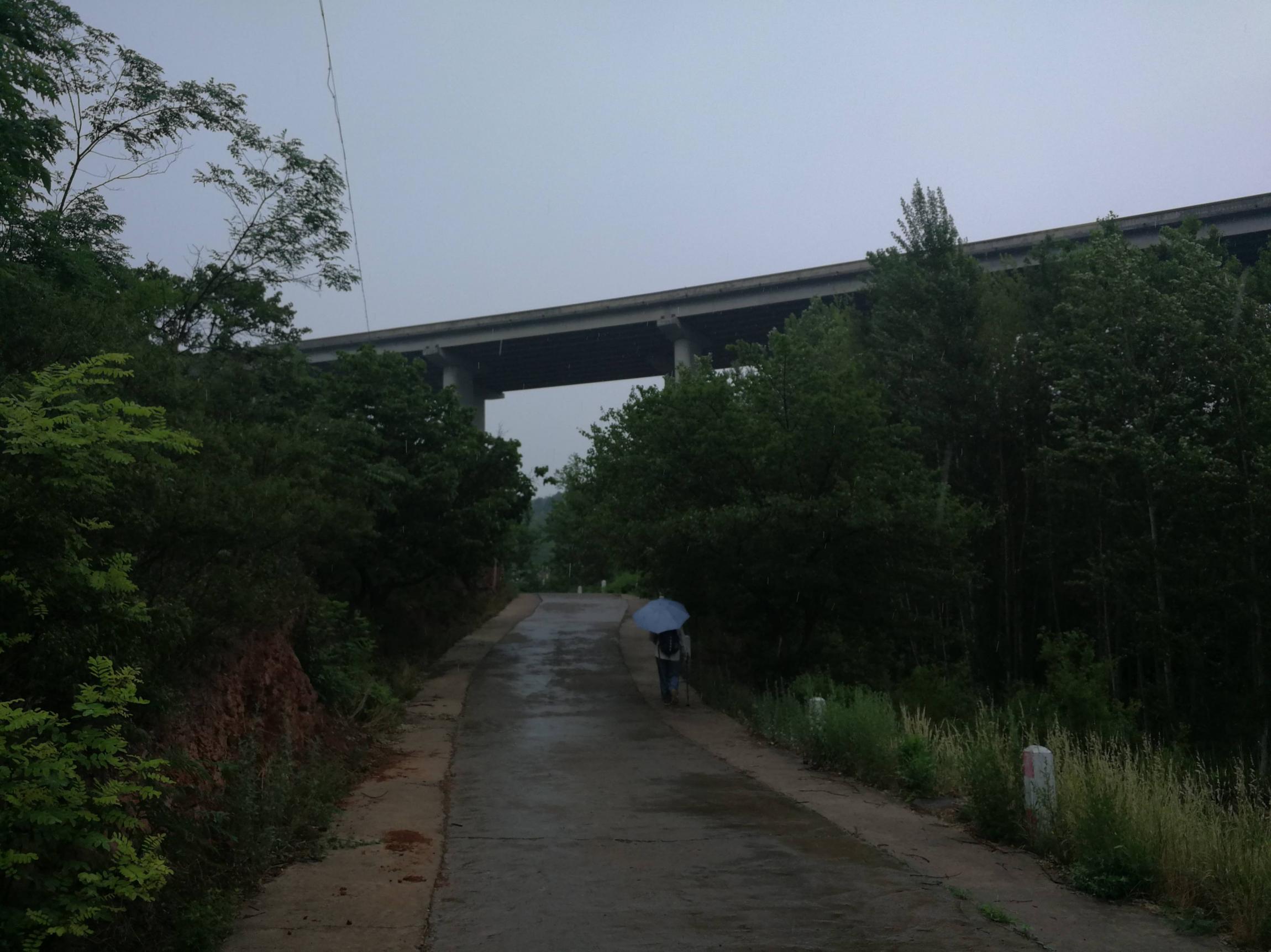 刚看见苇塘,零零星星的雨点开始落下,我们把伞打了起来,在安静的乡村公路上,这点小雨主要的作用是增加情趣。