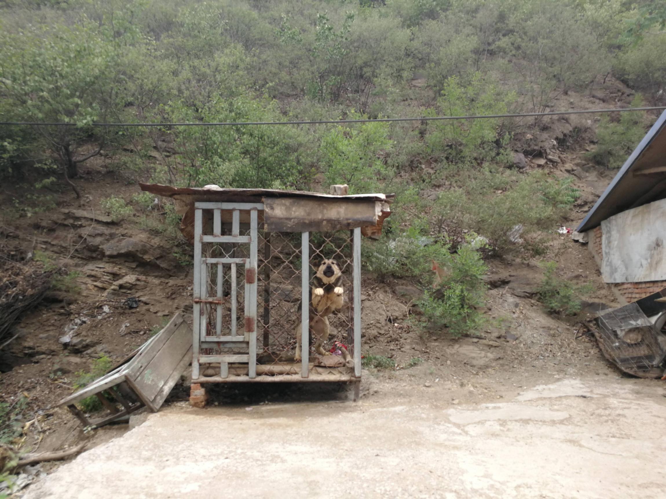 大北沟村头,几只铁笼子关着巨形犬,听见我们的脚步声就开始咆哮。