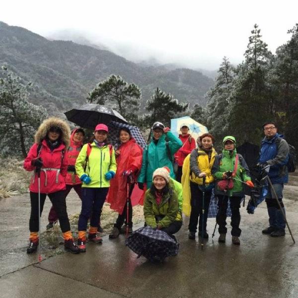 8点05分10个小伙伴各自在自己的车厢开启了旅程,36分钟后抵达衡山,和所有的小县城一样,拉客的人像“皮条客”涌上来黏住你,鱼姐“老口子”了,我们很快谈拢20元一人,送到水帘洞景区,看上去很顺利的到达,但是车主借口安全问题并没有把我们送到起步点,下车没走几步,有台漂亮的皮卡车从我身旁经过,因为人迹稀少,这车我印象深刻,没想到的是没过多久它就在前方路口等着我们。我阴暗的猜想,送我们的车主举报了我们,为了即将看到的美景我们还是乖乖掏了80大钞。比较欣慰的是该男子很热心的为我们照了一张此行的唯一“全家福”。