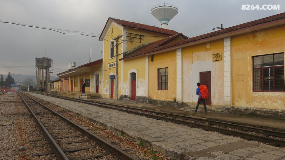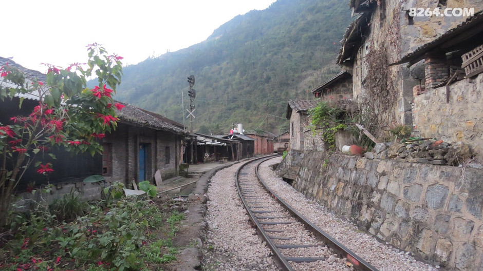 从湾塘乡政府去铁路上,必须首先上升200米,才能到达到山腰中的铁路上。铁路在大山沟里穿行,缓慢上升,让人感觉不到在爬升,沿途经过的几个车站,都被抹去了站名。这段铁路每天据说只有4趟火车,我们白天见到了两趟。