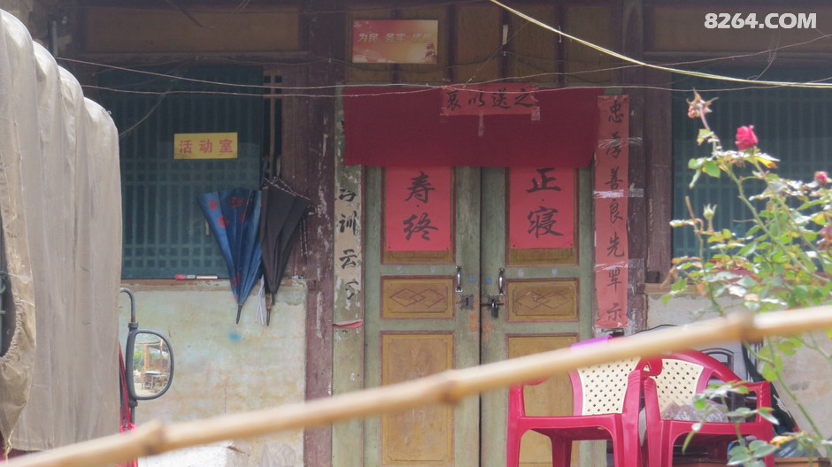 在老普白村,我们见到了一户人家的堂屋关用红字黑字写的对联“寿终正寝”,觉得好奇怪的习俗,后来,又在其它地方见到了,可能这里的白喜事都是用红对联吧。