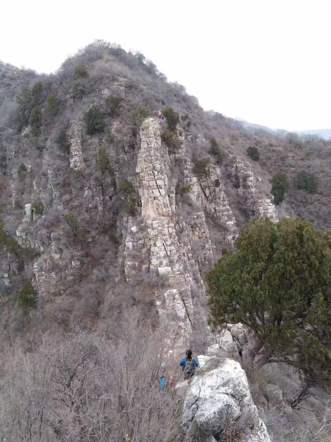 呵呵,竟然有这玩意儿。过了三角架,南侧是两段攀岩下降,【两段断崖,从左边绕下,对面还有一个断崖,从右侧绕上。攀岩下难度很大。】