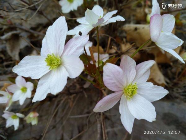 餐后快速下降,在岩间寻得北京市一级保护植物槭叶铁线莲,别名岩花或崖花,北京独有物种。一路上遇到过桃叶鸦葱,遇到过白头翁、遇到过独根草,但都不比这崖壁仙子皎皎如琼脂,淡淡似轻云,闲闲若新月,遗世独立,临风飘举,风姿卓绝。有诗赞曰: