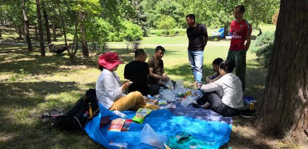 在孙大帅墓地后面的山坡上找了个树荫,铺上地席,野餐,玩猜成语游戏,玩了一会儿,我意识到这个游戏,如果想让大家都玩的尽性,要求大家都具备一定的成语储备,否则就是少数人的游戏。