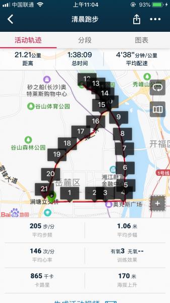 江边的环境现在已经很好了,临水基本都是绿色步道,跑步散步骑行都很舒服。预期三小时完成,实际耗时两小时,去掉等红绿灯拍照等中间掐表的时间大概二十分钟。最后五公里有点晒,最后在西二环杜鹃路口遇到小妖,他们今天也是半马。