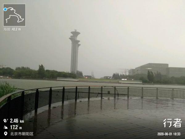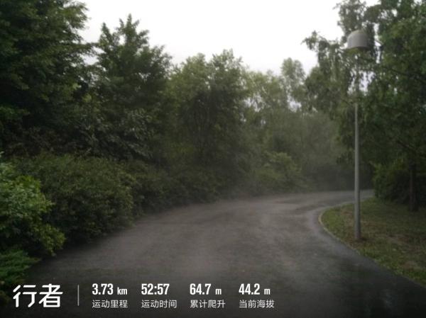 原本为了回避晚上的跑团,我打算避开塑胶跑道,在南园来回绕小路挣够1万米,没想到,刚一进南园大门,天上的黑云就被风吹下来了,转眼之间,路上就鲜见人影。转到天元打卡的时候,雨点正密,照片都是歪的。
