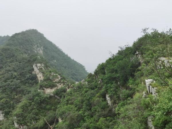 天门山现在两道门禁卡,第一个路口老汉把关,往前走从灌木中绕过。到了铁门处一个横卧门卫室床上的老汉大呵:“从哪来的回哪里去”。无奈回撤从路西侧绕山,蒿草把裤子弄个湿透。走了有三百米下到景区水泥路。路遇分别三个遛弯人默默无语没加干涉。