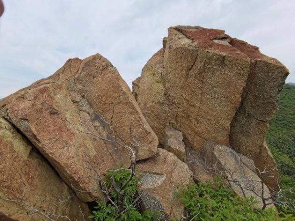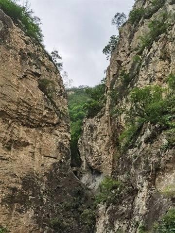 这个断崖高约10米,上次从右面绕过去的,这次仔细看有人码放的台阶,也就不费力上去了。