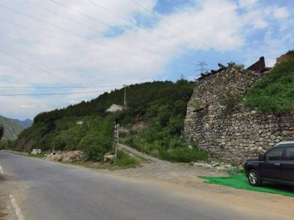这是高德地图标注的段江沟,当地人叫柳公沟,大约在大前年想来看看,无奈此地施工不让进。这次喊了三次人未见回音于是从门的右侧大洞进入。从遮阳伞看写着斋堂左岸小镇,这就明白了大门外石壁上的“曲径通幽”大字下面的落款左岸小镇意思了。