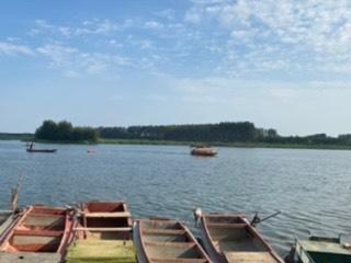 这一站,最惬意的要数大堤路。正值处暑,早晚有了凉意,下午,被太阳烤了一天的大地还是有些暑热的。一上大堤路,就像进入一个天然空调的通道,顿时凉风习习。老独游记中写到“大堤两旁高大的白杨树遮天蔽日”。大堤上坐着很多当地居民,乘凉的聊天的打牌的,一派祥和。大堤下是金色沙滩,多是带孩子来玩,有不少帐篷,是的,这里允许扎营。听独行叟说,有一次他和好友等几个人过来,碰到有个半大小子溺亡,令人唏嘘……老独带我们去一片野荷塘,荷花丛中有一条废弃的木船,正好供我们各种摆拍。在出走社北京群里,看见右尼中午12点多来过这里,哎,擦身而过。回到大堤路,一直往北京方向走,可以走到北京—河北界。逛逛说,别嫌走少了,我们可是从河北走回了北京!:D