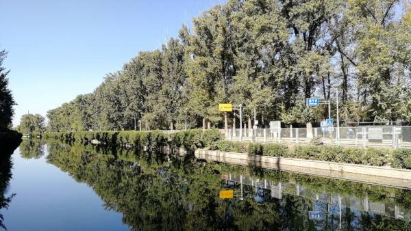 京密引水渠怀昌路一侧,绿化带时宽时窄,经常会把我们逼到车流不息的怀昌路上,因而第一次有桥能到对岸的时候,我们就转移到了引水渠南侧,直到李家史山泵站,接近午餐地了,才转移到北侧,伺机抄近去桥梓。