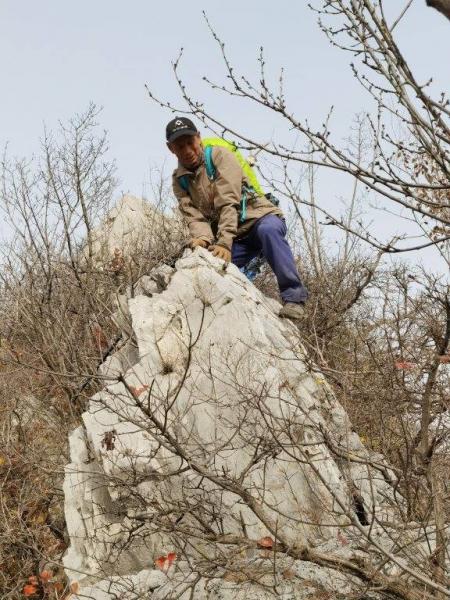 我们继续朝东走。忽然间草丛中有个大活人活动,吓了一跳。原来是一个40多岁的动物爱好者下午从下苇甸上山到落坡岭水库往返,寻找一种野羊踪迹,他说这种羊在凤凰岭也存在,他还让我看了他发现的粪便照片。